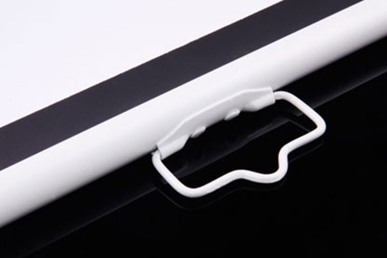 Self-Lock Özelliği sayesinde Perdeyi herhangi bir yere tutturmanıza gerek yoktur. Perdeyi indirmeyi durdurduğunuzda perde kendi kendini kilitler. Toplamak istediğinizde ise hafifçe çekmeniz yeterlidir. Böylelikle; Projeksiyon perdesi kilit mekanizmasından kurtularak kendini kasasına geri saracaktır. Ön yüz siyah kontrast çerçeve sayesinde görüntüyü ayrı bir moda sokar ve izleyiciye seyir zevkini artırır. Arkası karartılmış yüzey minimum ışık kaybı için kullanılmıştır. |